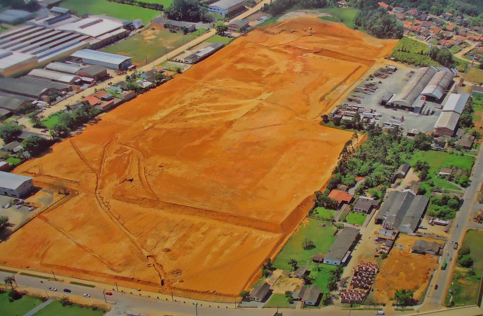 Inicia-se a terraplenagem em uma área industrial para a construção de uma nova fábrica, sinalizando o compromisso com a expansão.